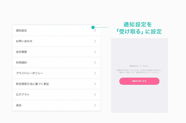 アプリを開いたら、通知設定を「受け取る」に設定しましょう。マイページの通知設定からも、設定変更は可能です。アプリ会員限定クーポンなどお得なお知らせをお受け取り下さい♪