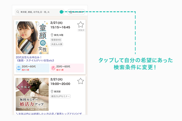 婚活・恋活のコツや、役立つハウツーを学べる無料セミナーもあります。