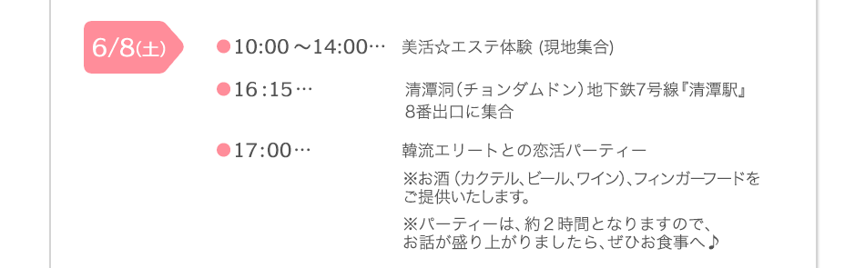 今回のツアーは、韓国人のエリート男性が集まるパーティーと、