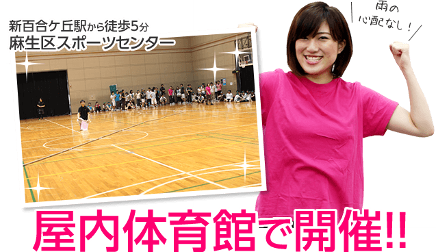 - A.会場は屋内体育館!雨の場合でも開催致します。