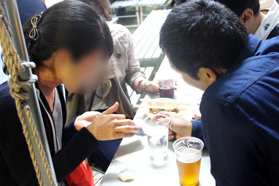 終了後は連絡先を交換する姿や、