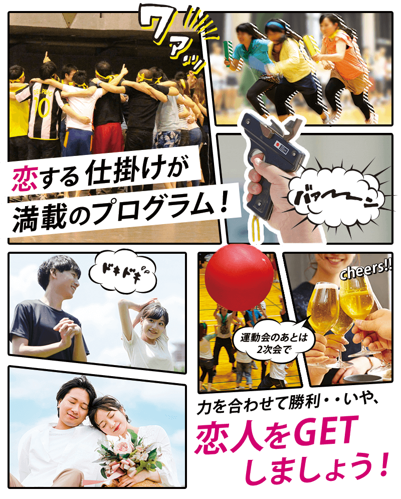 男女混合のチームでオリジナル競技に参加!競技間でメンバーチェンジを行い、異性全員と交流♪
