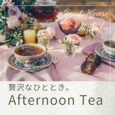 飲み物 - アフタヌーンティーが付きます。別途お飲み物が必要な方はご自身でご用意ください。