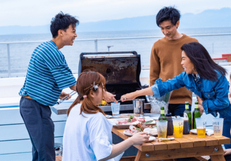 左手には江の島、右手には富士山の最高のロケーションでBBQをお楽しみいただけます!