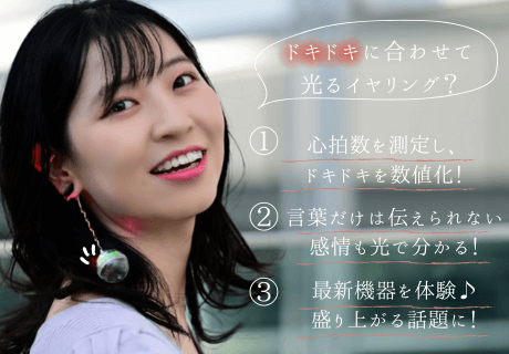 今回は”ドキドキ”が計測できる最新デバイス「e-lamp.」を使用!