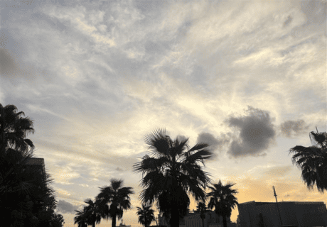 つきあたりにある青と白のボーダーが外壁の建物がアマンダンセイルです。