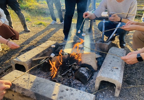 みんなで焼いた焼き芋とマシュマロを囲んで、