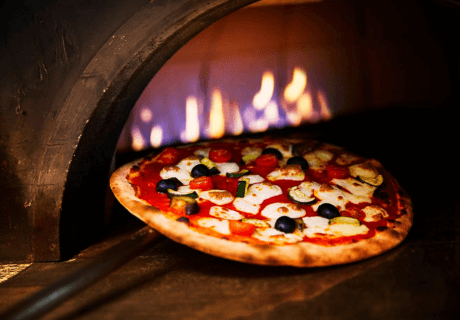 上品な会場で洗練されたピザやパスタを堪能。