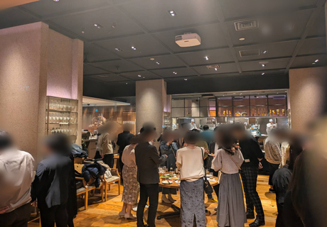 立食形式でグループごとに乾杯
