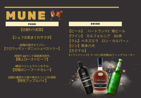 ・仕入れ状況により、フード・ドリンク内容が変更となる場合があります。