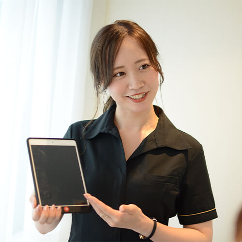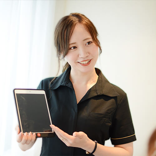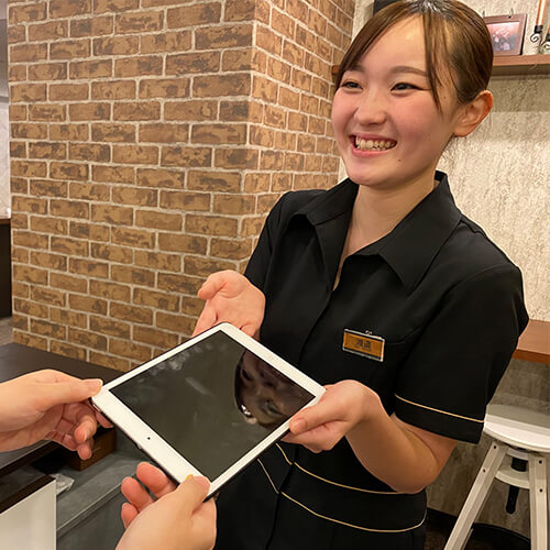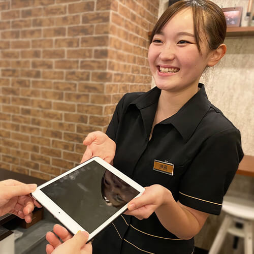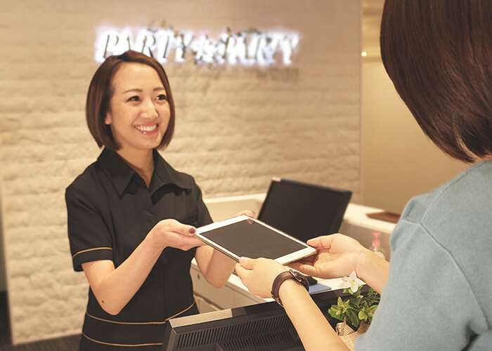 お客様1人1人と会話をしながら、スムーズに受付を行います。