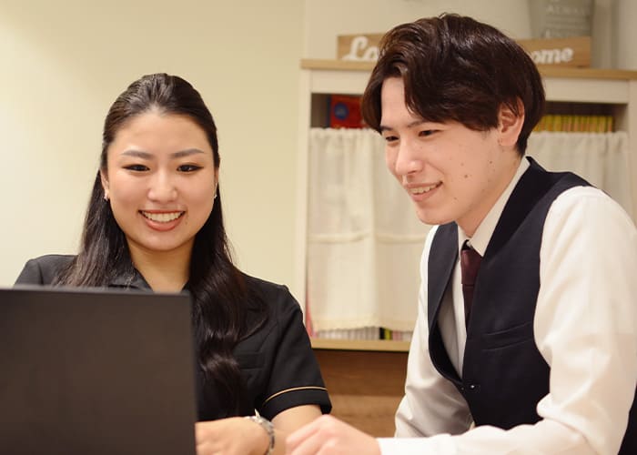 素敵な出会いを見つけていただくため、お客様一人一人と積極的にコミュニケーションを取り、婚活の悩み相談やおすすめパーティーの紹介を行います。