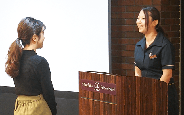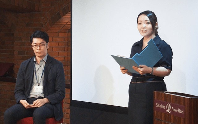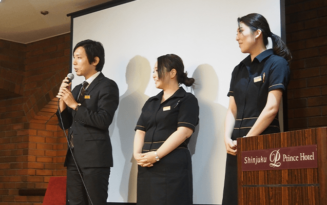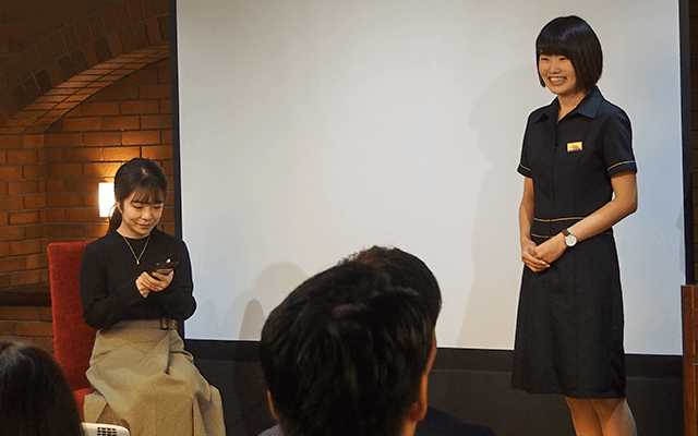 丁寧かつ安定感のある立ち居振る舞いと、お客様目線で工夫を重ねたアナウンスが特徴的だった新さんが優勝。応援していた同じチームの後輩からは花束の贈呈も。