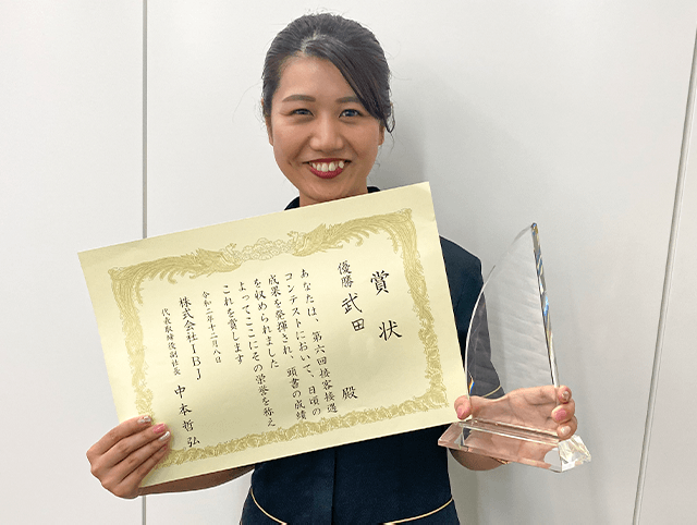今では、来場されるお客様にトロフィーを見て「すごいですね!いつも素敵な接客だなと思っています。」と声を掛けてくださる方も多く、自分への自信にも繋がっています。